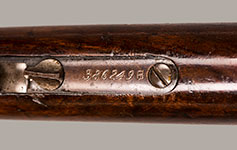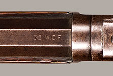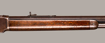 #386249B. Cal 38-40 WCF. Third Model. 24"inch octagonal barrel Rifle. Rifle retains about 30% overall original blue, the balance is a nice brown patina.Original sights include a German silver blade front and typical sporting rear. Mechanically perfect with a near mint bore. Very nice wood with a few traces of handling and storage. Gun was made in 1890! Total production of the Model 1873 WInchester was 720.609. A rifle in a far above average condition! Very fine! Cartridges shown for information purposes only.