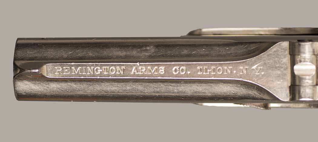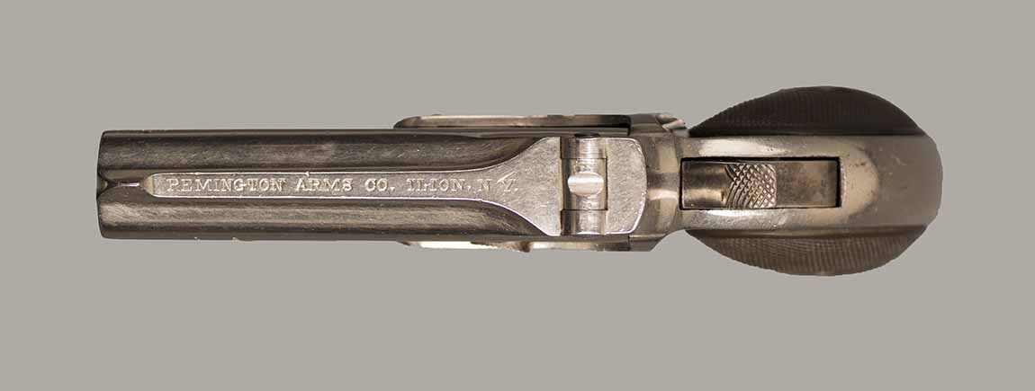 #36. Cal. 41 Rimfire. Standard 3" Barrel. Third Model, third type. Long line signing barrell address! Retains 99% of the original nickel plated finish. Hammer has 98% blue. Correct and perfect black checkered hard rubber grips. Matching serial numbers! Mechanically perfect, bores are excellent. Gun has perfect hinges! Made cc.1888. About 67.000 to 70.000 made. Beautifull deringer in a near mint condition. Would be hard to improve! Cartridges shown for information purposes only.